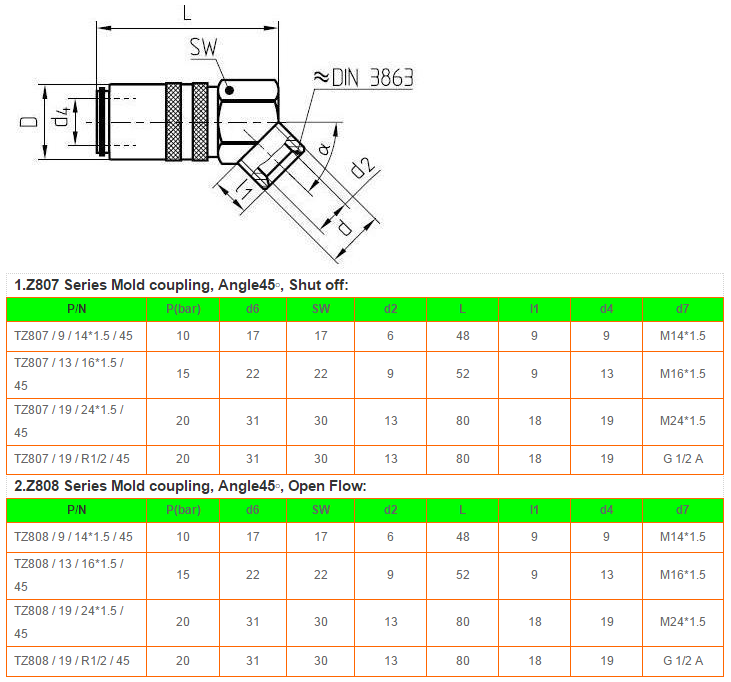 1. Hasco快速耦合设计用于塑料模具和模具,死在水,空气或油线中。
