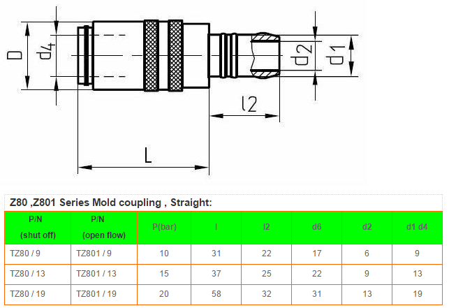 3.快速耦合可以与模具或模具中的相同乳头塞互换使用, 两种类型快速耦合的可比尺寸具有相同的O.D.,甚至允许互换性