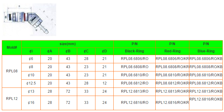 RPL连接器具有三个不同的直径,以覆盖模具温度控制所需的任何流程。
