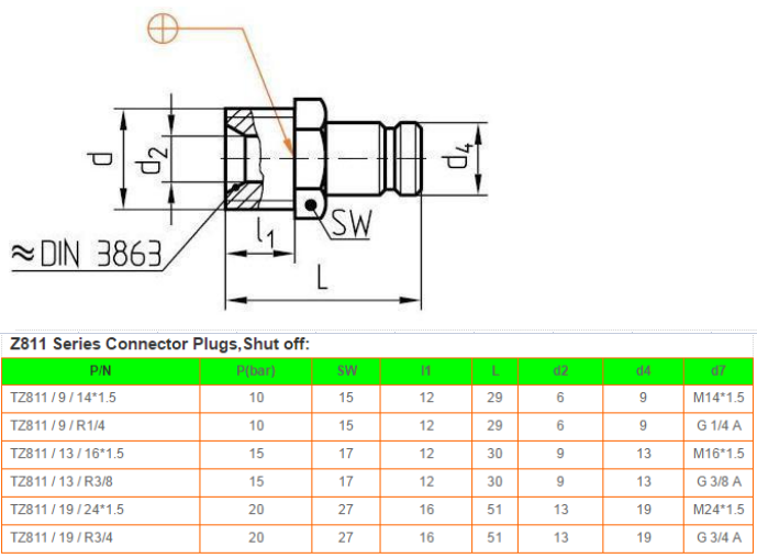 SV系列男性插头只能与SV系列快速耦合一起使用